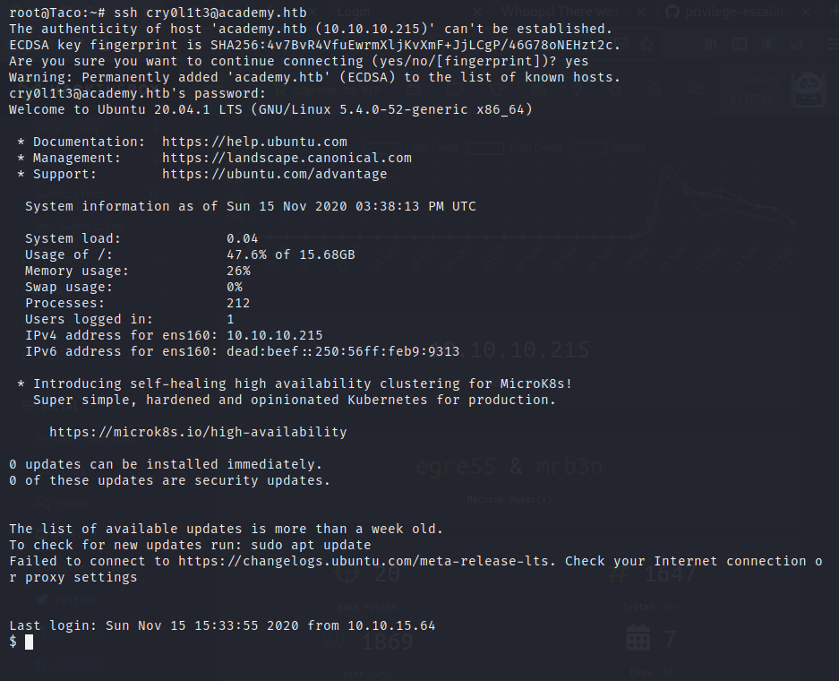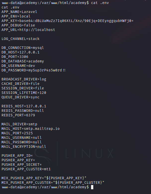 Academy is a very complete Linux machine about the new HackTheBox Academy platform, which covers enumeration with directory lists, virtual hosting, Laravel exploitation, a lot of lateral movement and privilege escalation with composer.