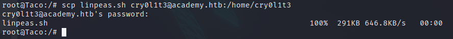 To escalate privileges we can enumerate the system with the linpeas script, so I copied it to the machine.