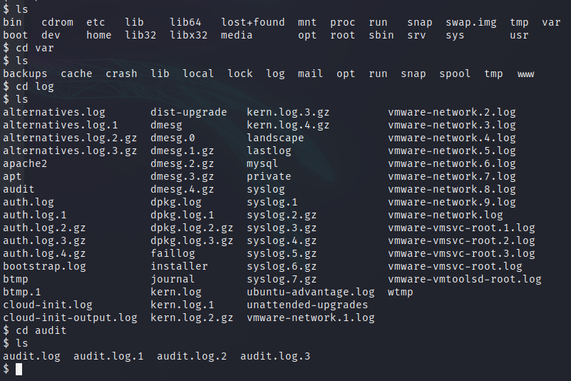 The only interesting thing is that we are part of the group adm, which we can also see with the command id