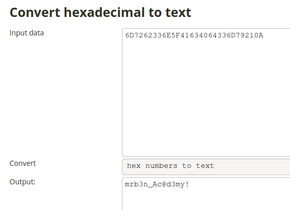 So we only have to translate the data from hexadecimal to text, and we have the password of the user he moved to.