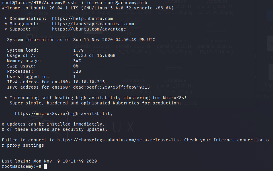 At the end, we can finally use the ssh key to connect with ssh to the machine.