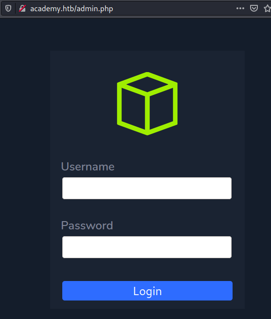 We get the HTB academy webpage, but there’s nothing relevant there. It seems that we will need an admin account.