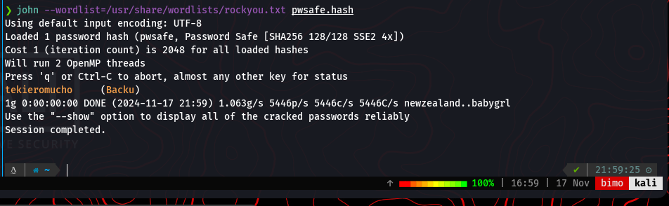 Logged into the FTP service using Benjamin’s credentials and retrieved a file Backup.psafe3