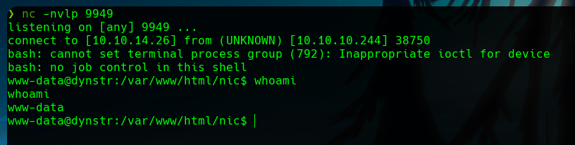 With this payload, if we listen in our machine with nc in the specified port, we will get a reverse shell as the www-data