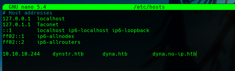 First, we can add the main host of the machine to our /etc/hosts