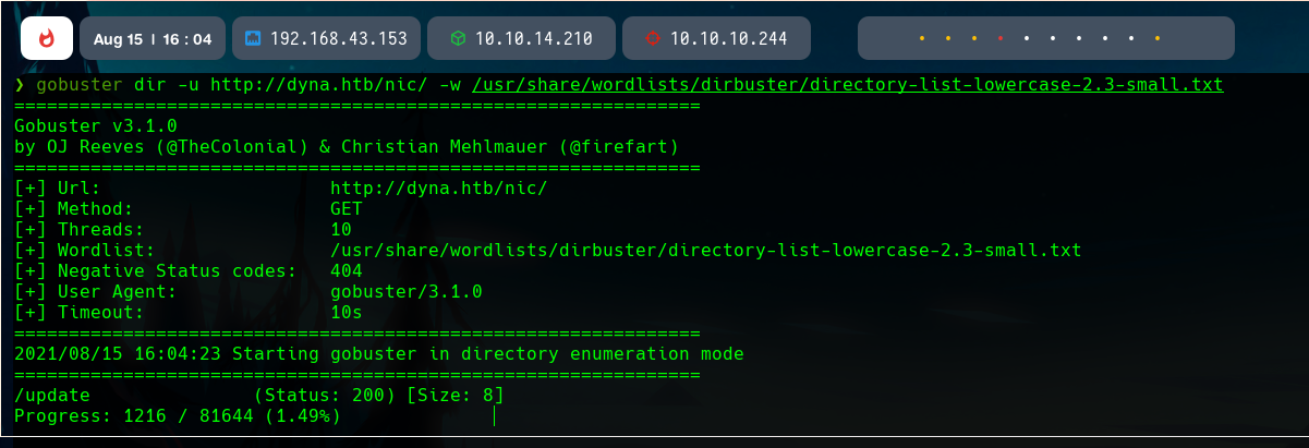 If we do fuzzing in the main host, we can find an interesting directory, /nic.