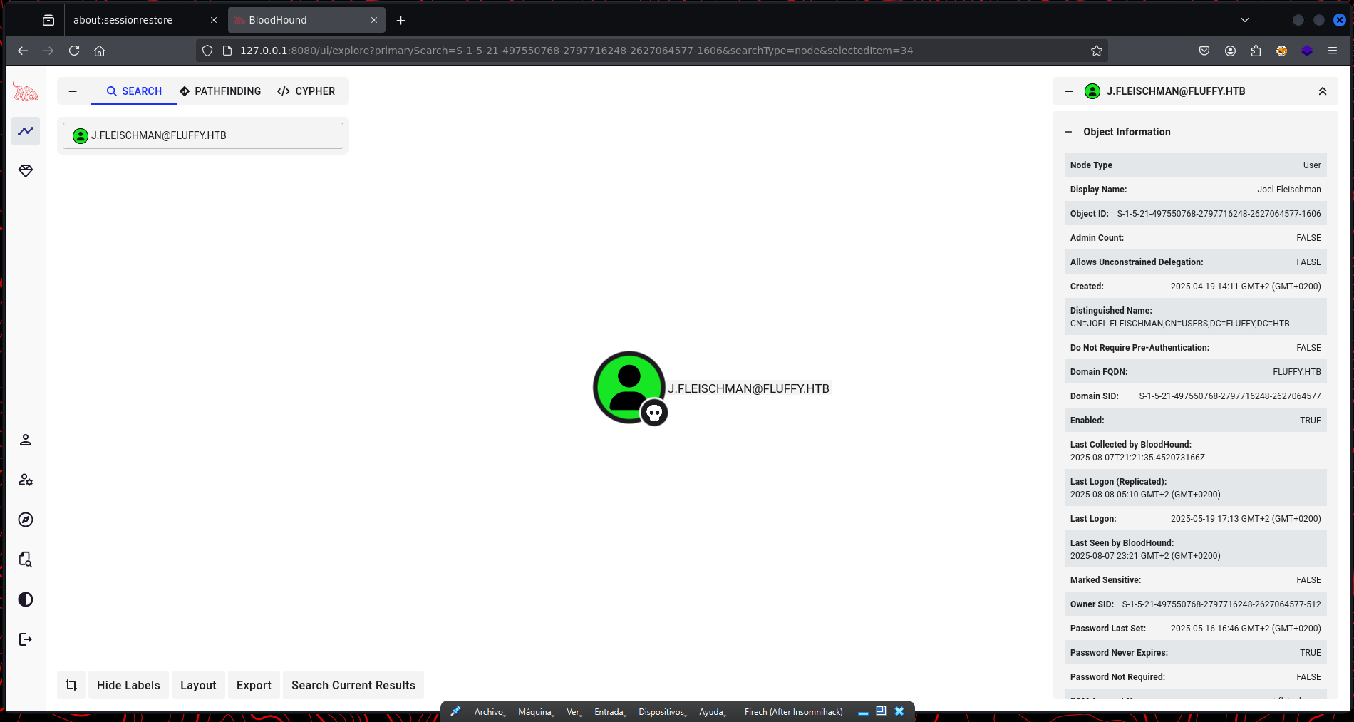 Analyzing the data shows us the object for our current user, J.FLEISCHMAN@FLUFFY.HTB