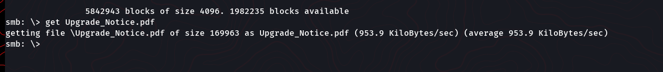 Inside the share, we find several interesting files, most notably a KeePass password manager zip file and a PDF notice. This is a very promising find, as password databases often contain high-value credentials.