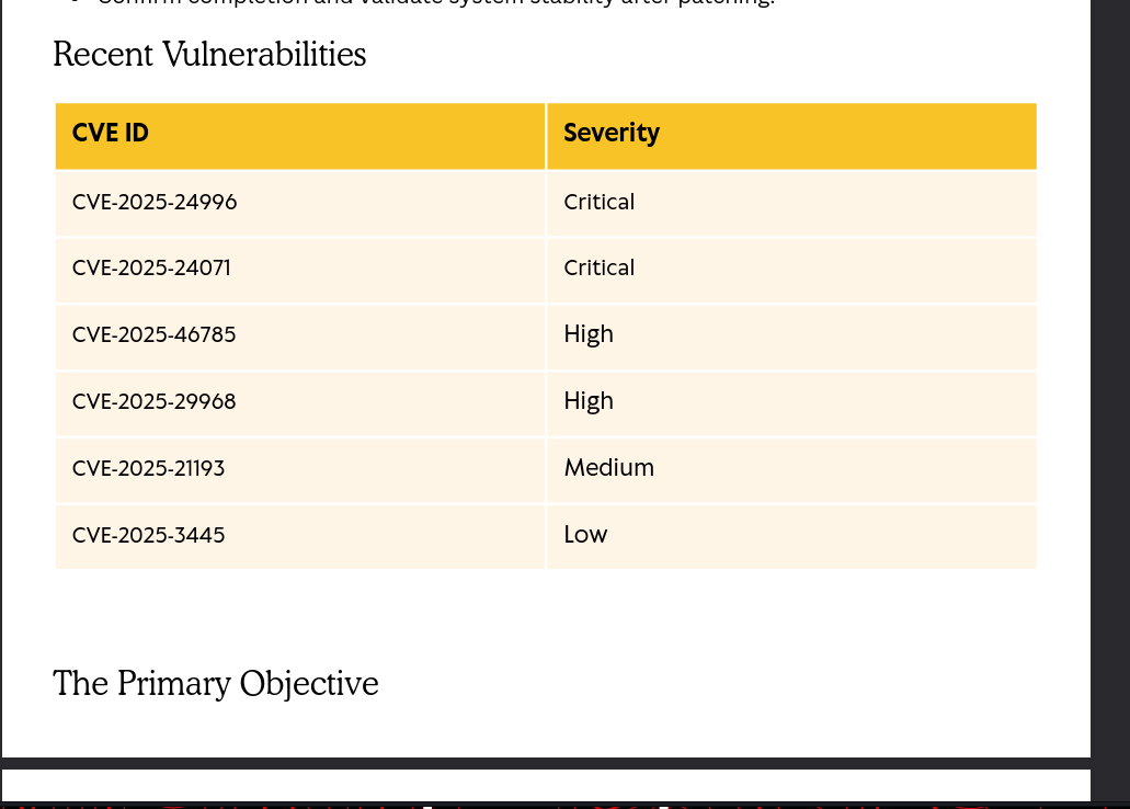 One specific vulnerability, CVE-2025-24071, is listed with critical severity. This makes it a prime target for investigation.