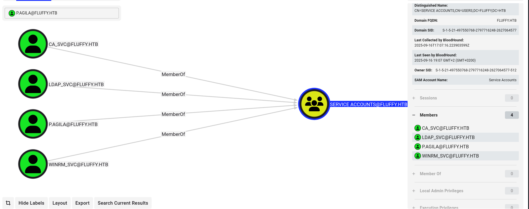 is a member of the Service Account Managers group. This is a high-value group, as members have permissions to manage Group Managed Service Accounts (gMSA), which can often be abused to gain further access.