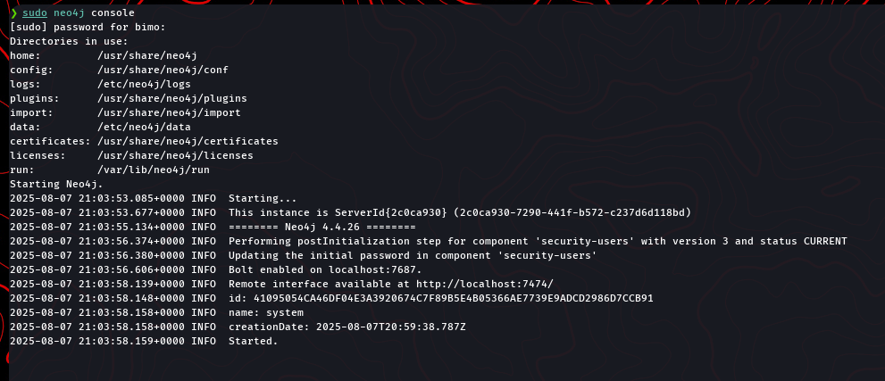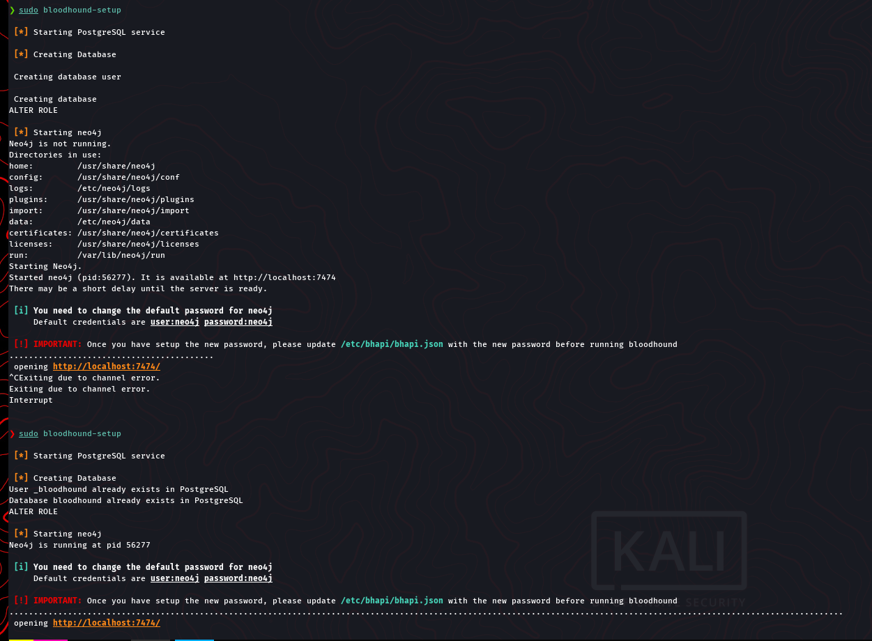 Once the data collection is complete, we need to set up the BloodHound GUI to visualize and analyze the results. This requires starting the neo4j