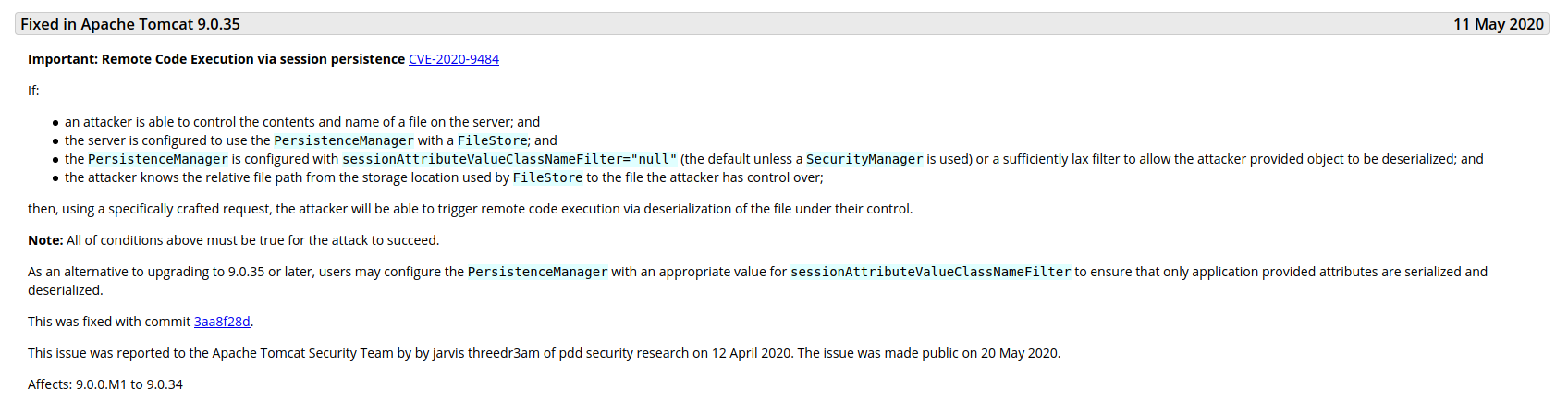 This version is affected by the CVE-2020-9484