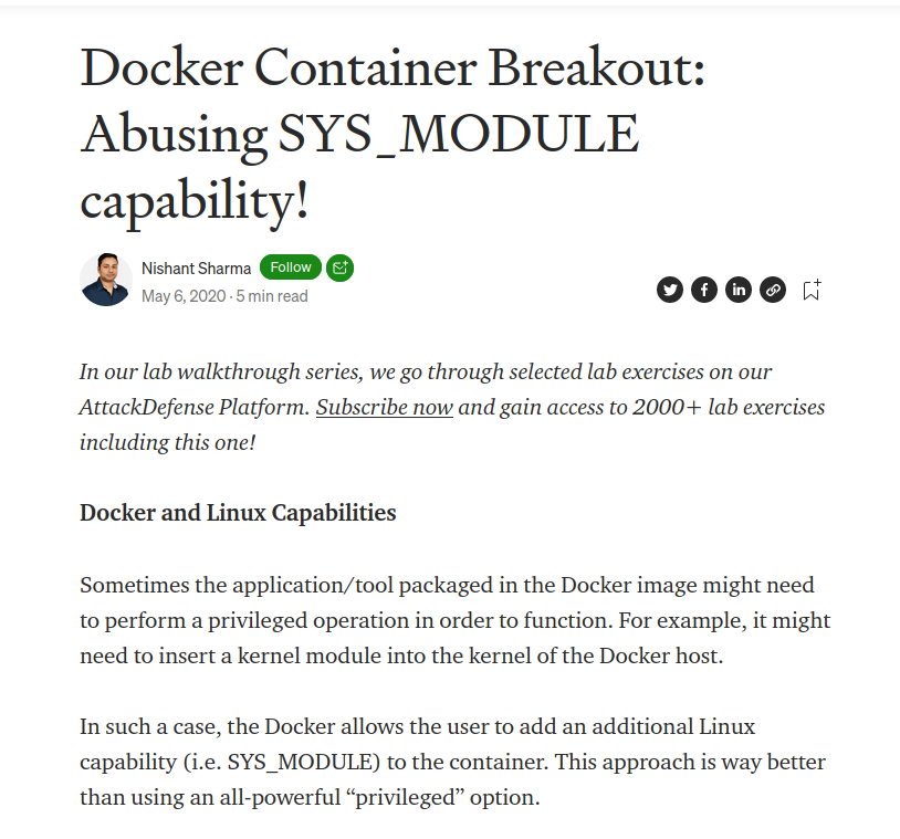 I found an article that explained really well how to exploit this capability to get out of a docker image.