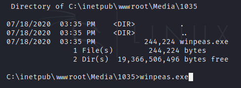 We will be enumerating the system via Winpeas. To run it we will upload it as we did with the payload before.