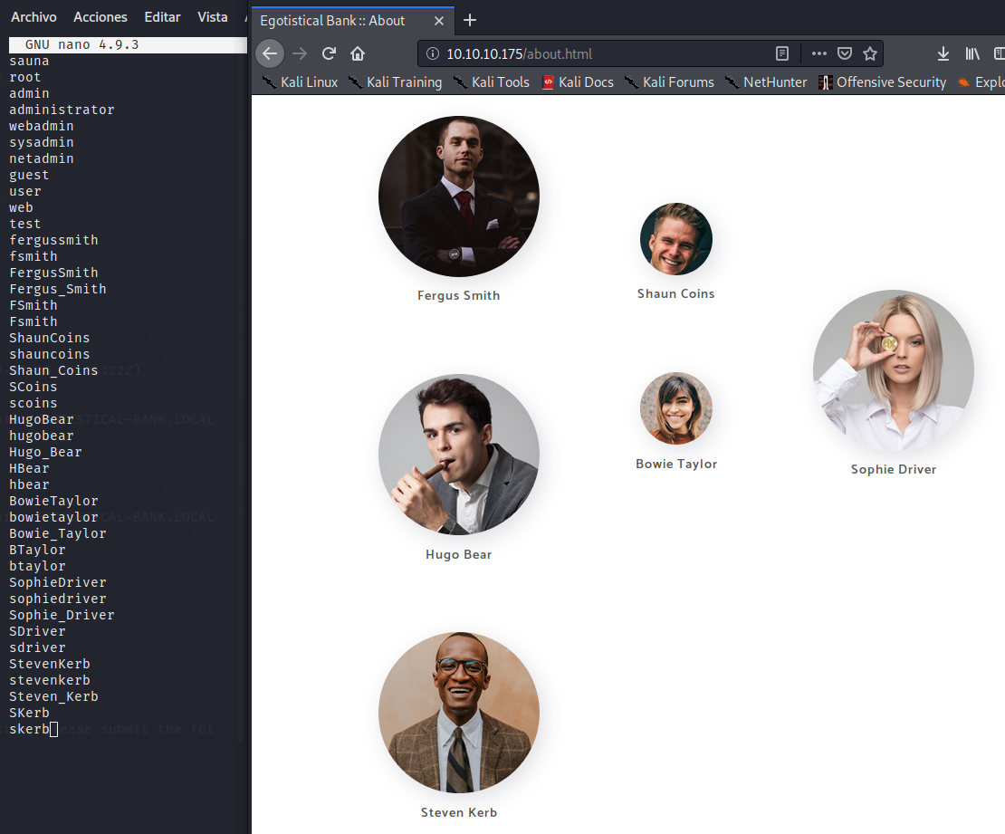 Sauna is a very complete Windows machine, in which some of the most common tools are used to gain access and escalate privileges in the system. The enumeration requires making a list of possible usernames using the about page of the website. In the privilege escalation, the Pass-The-Hash technique is used to become administrator, which makes the machine interesting at the same time that it is easy and enjoyable to start with Windows pentesting.
