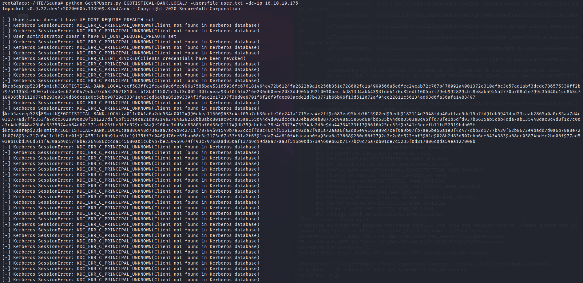 Using the GetNPUsers.py tool of impacket, we can get the hash of fsmith