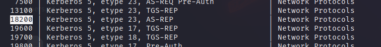 With the help menu of hashcat, we can identify the attack mode necessary to crack the kerberos hash we just obtained. In this case, 18200.