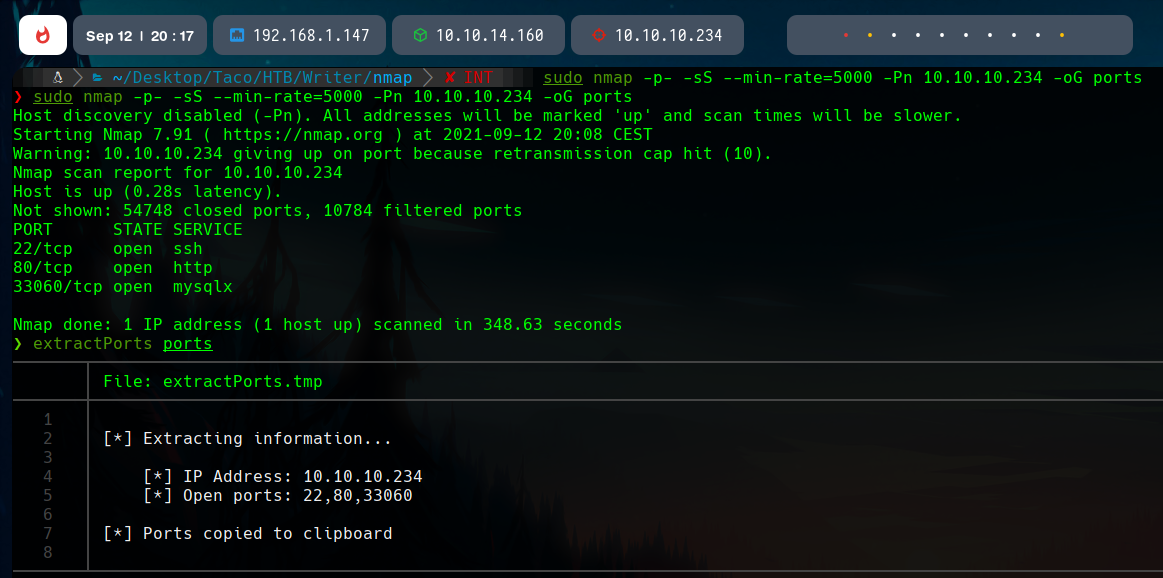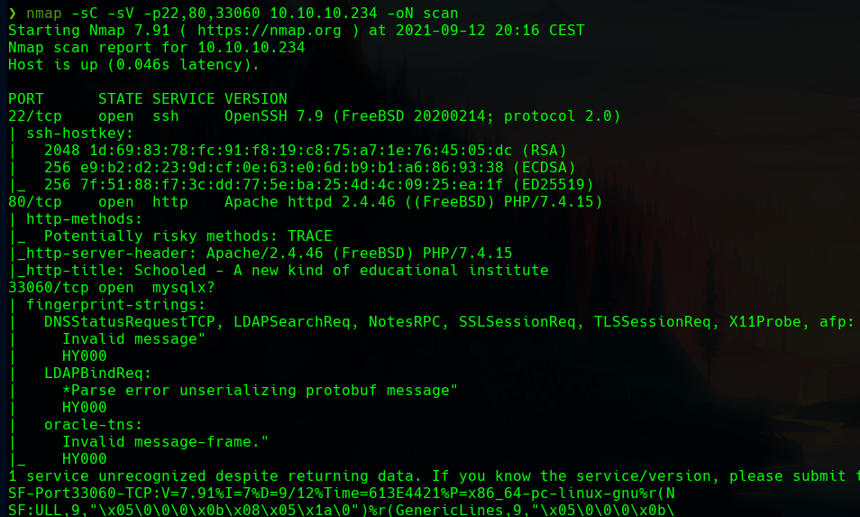 In the port 22, there is OpenSSH running, and int he 80, a http Apache web server. The 33060 port is about mysql.