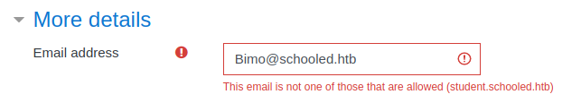 While we are registering we will notice that our email is not valid, but we are provided with the allowed one (student.schooled.htb