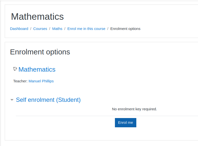 Logged in the moodle, it is possible now to enroll to the Mathematics course.