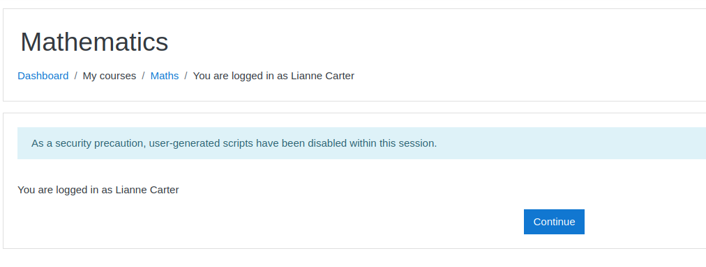 We are now Lianne Carter in the Moodle, a user with manager privileges.