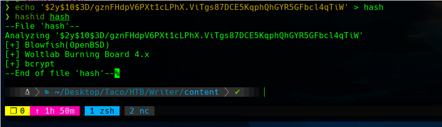 tool told us that the hash is most likely a bcrypt Blowfish hash.