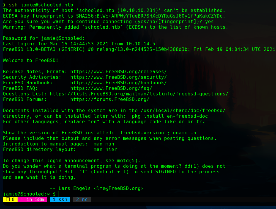 The Schooled HackTheBox machine is a Medium FreeBSD system with a Moodle web content manager, very real-life applicable as many school and university systems are configured the same way as this one. From a simple school webpage, you go through student, teacher and manager accounts to finally root the system.