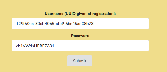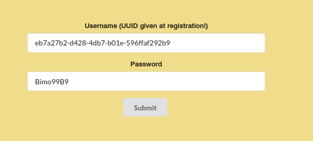 When we click the register button, we are given a UUID. With this UUID we can try to login.