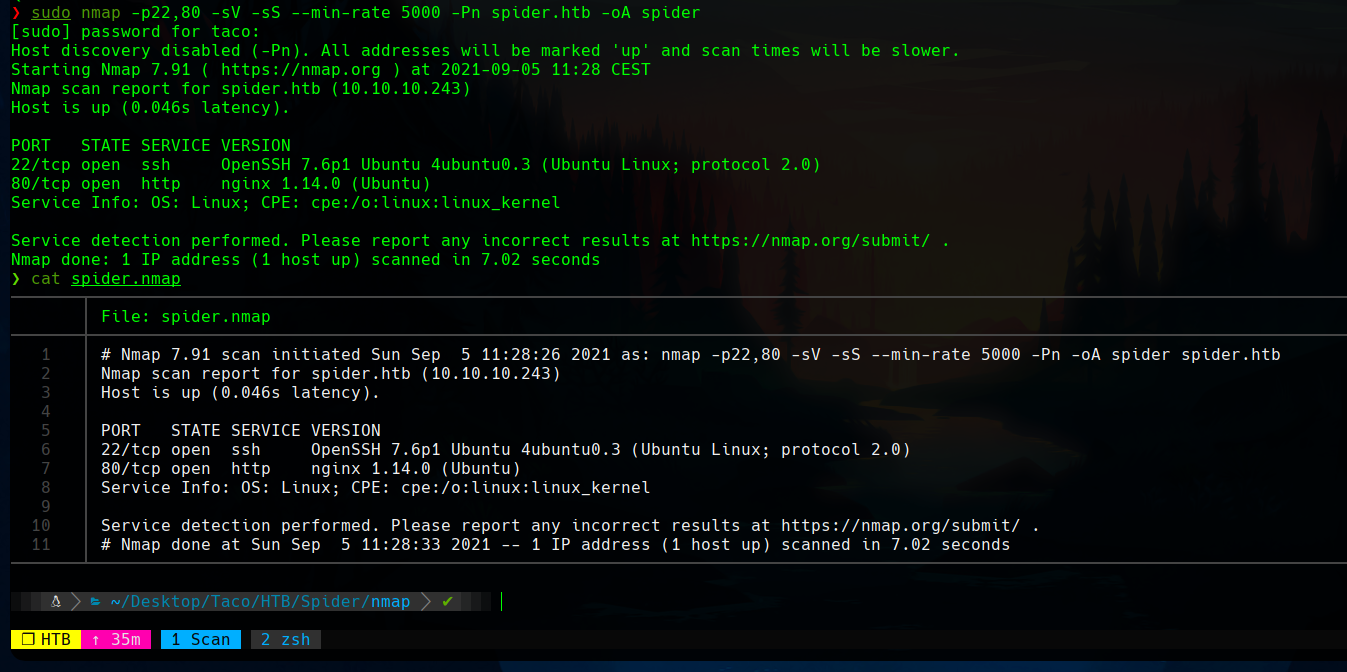 Here, we can see that the port 80 hosts a nginx web server. The machine is a Linux OS and has Secure Shell Connection enabled.