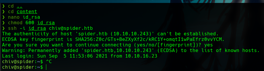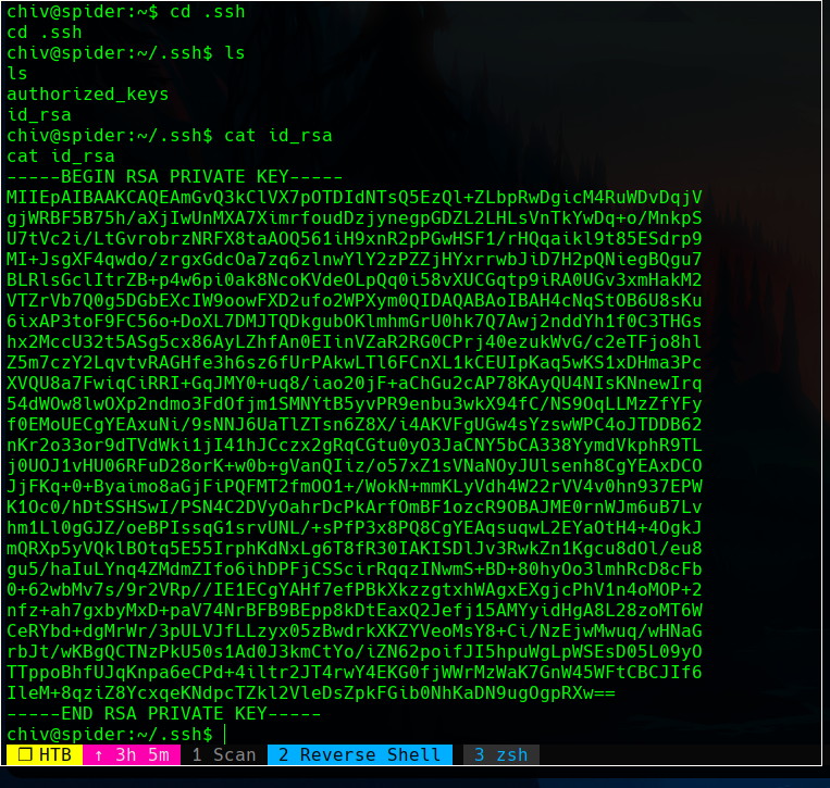 To make it easier for us, we will get the chiv id_rsa, and use it to connect with SSH.