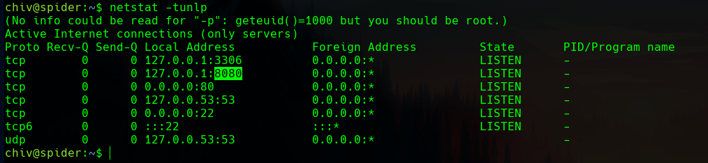 we can see the listening ports in the victim machine. The 8080 one seems interesting, as it is normally associated with HTTPS services.