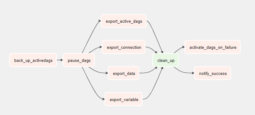 The next day, a similar process retrieves the configuration of the exported environment and uses it to recreate it. When the creation is finished, another DAG restores the active DAGs.